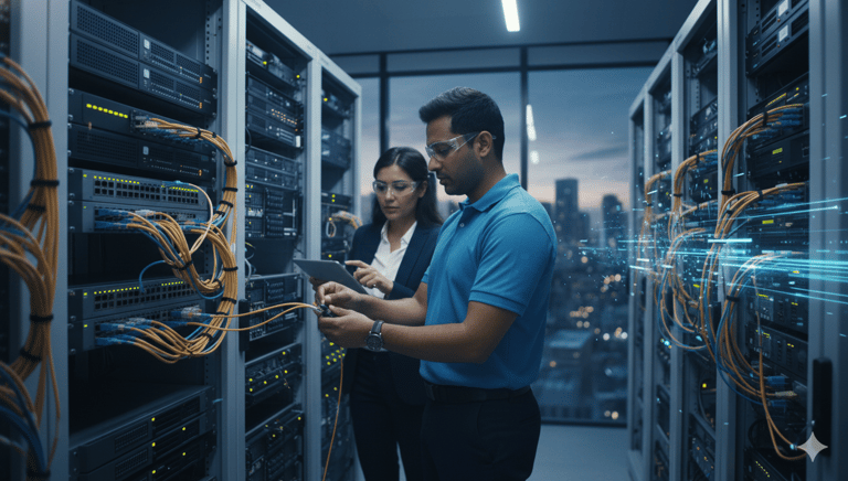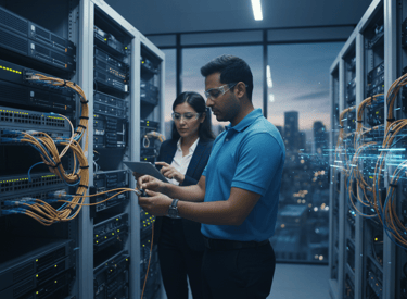 Redes de Voz y Datos: Diseñamos e implementamos redes robustas y veloces que garantizan una comunicación interna y externa fluida, la base de toda operación moderna.