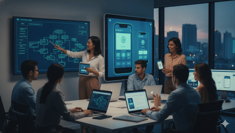 Aplicaciones Web y Móviles: Creamos software que se adapta exactamente a sus reglas de negocio. Desarrollo e implementación de aplicaciones web y apps para móviles enfocadas en la usabilidad y la productividad.